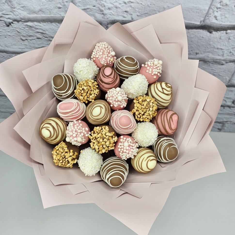 Этот великолепный букет от бренда DariDV - идеальный подарок для сладкоежек! В нём гармонично сочетаются свежая клубника, облачённая в сладкий бельгийский белый и молочный шоколад, и стильная дизайнерская упаковка. Каждая ягода тщательно отобрана и вручную обработана нашими мастерами.