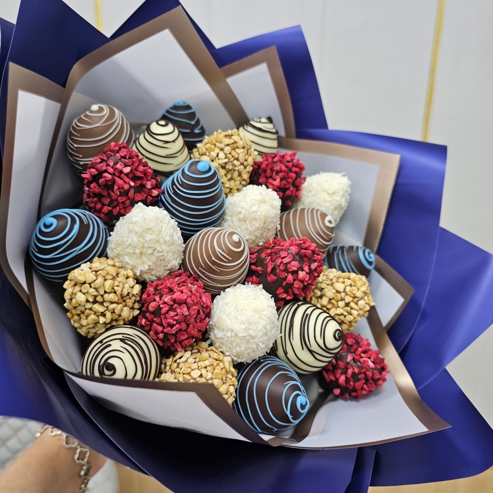 Качество и составБукет 25 клубник в шоколаде от DariDV - это не только красиво, но и вкусно. В состав букета входят ягоды клубники, покрытые бельгийским шоколадом, украшенные сублимированной малиной, кокосовой стружкой и воздушным рисом. Все компоненты подбираются с особой тщательностью, ведь наша основная цель - удовлетворение вкусовых предпочтений каждого клиента.
