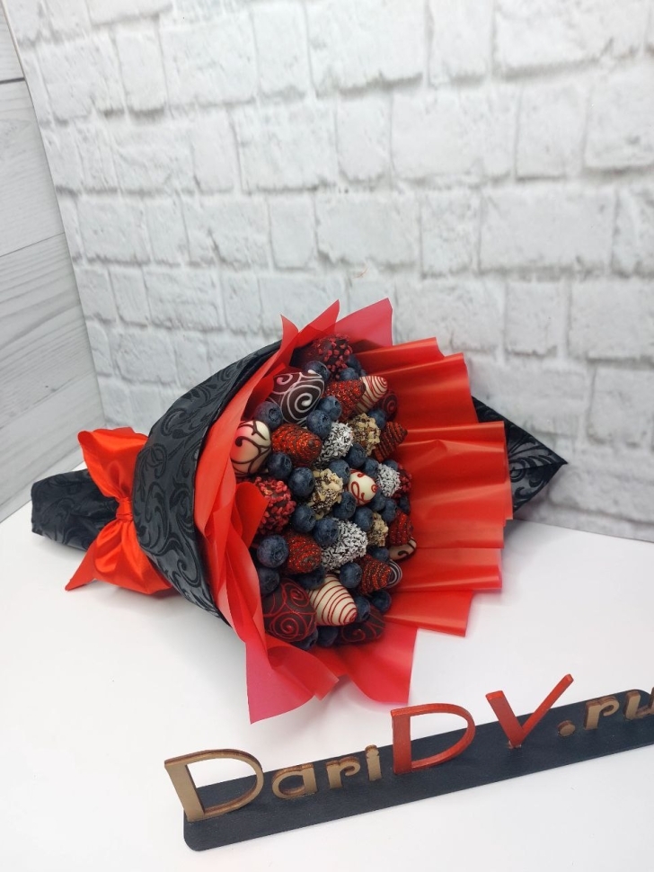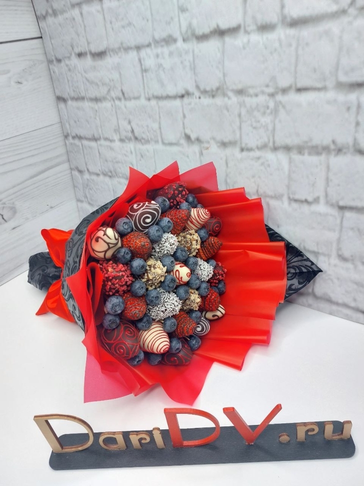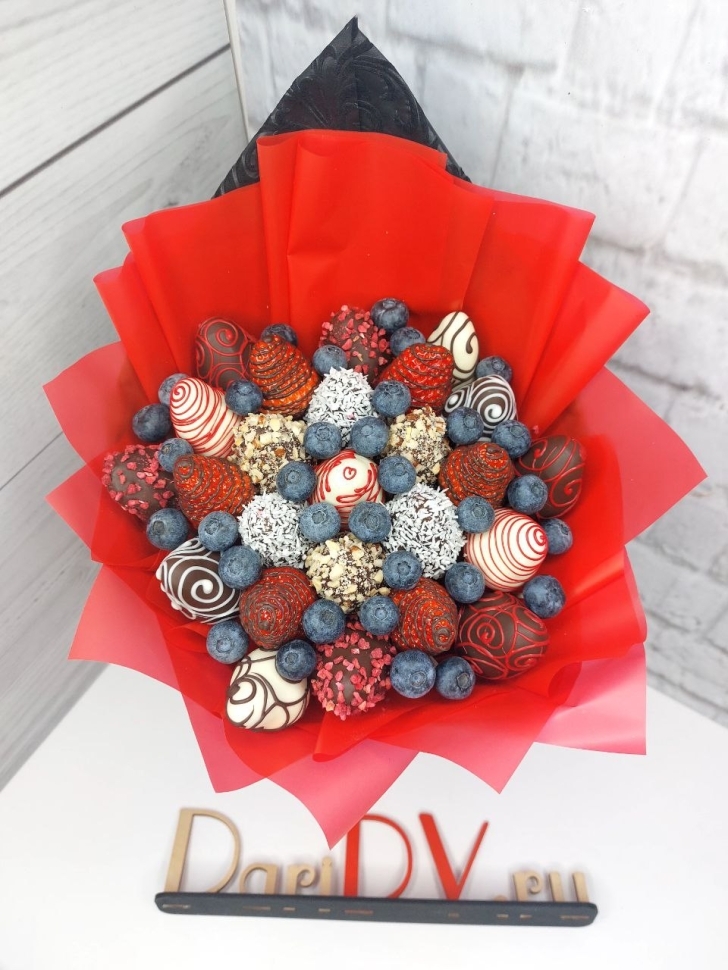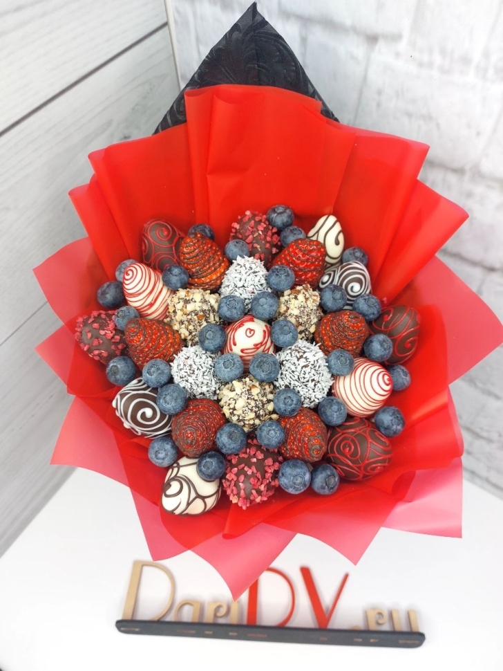 Представляем вашему вниманию Букет 27 клубник в шоколаде с черникой – идеальный подарок для любого случая. Этот товар производства DariDV – замечательное сочетание ярких вкусов и эстетического удовольствия.