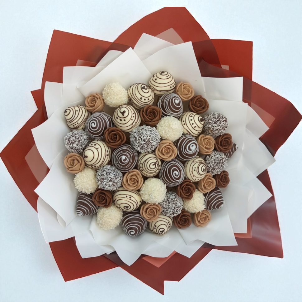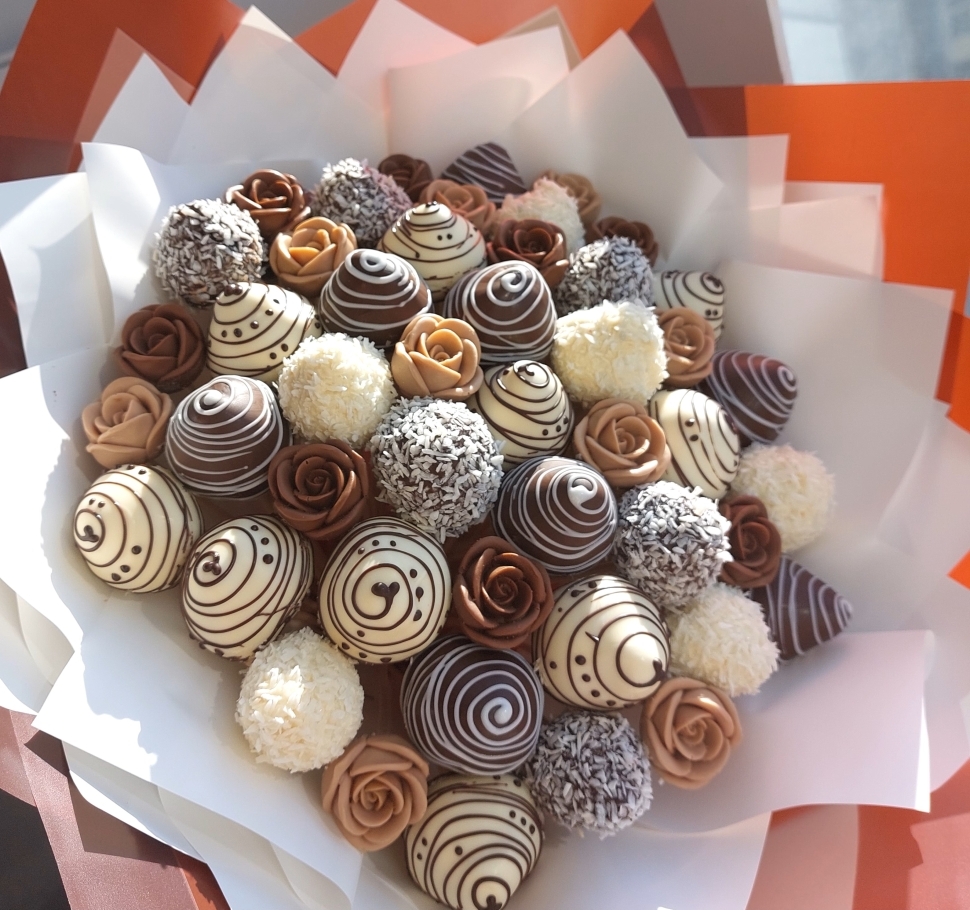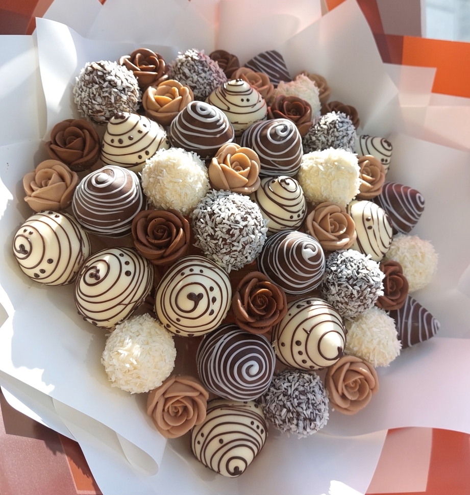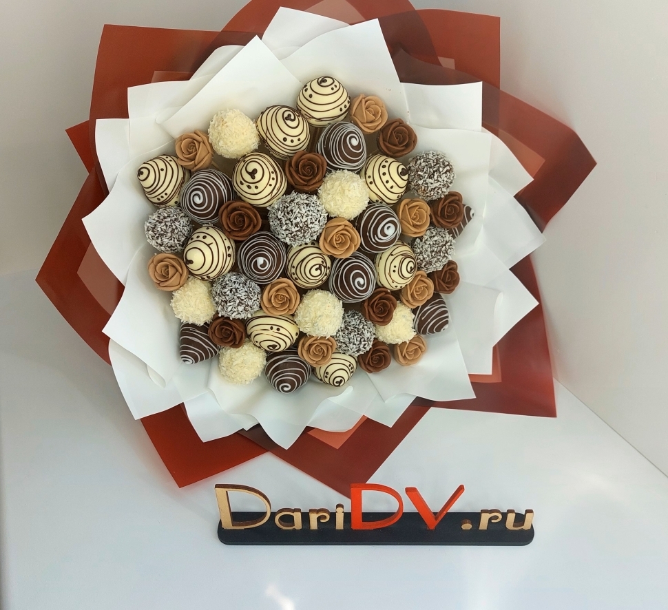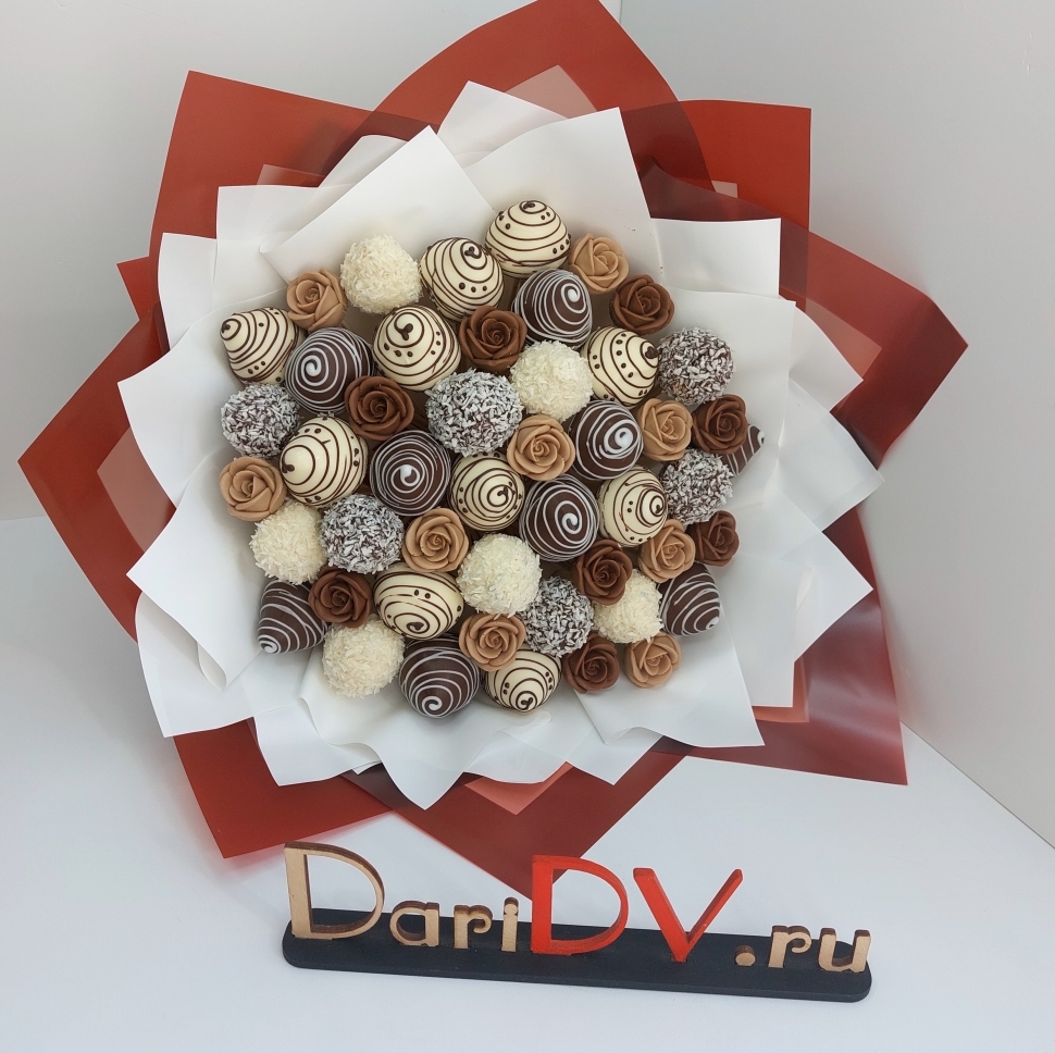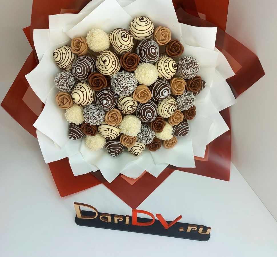 Бельгийский шоколадДва вида шоколада используется в этом букете – бельгийский молочный шоколад и бельгийский белый шоколад. Каждая ягода покрыта шоколадом вручную, что делает каждую из них уникальной.