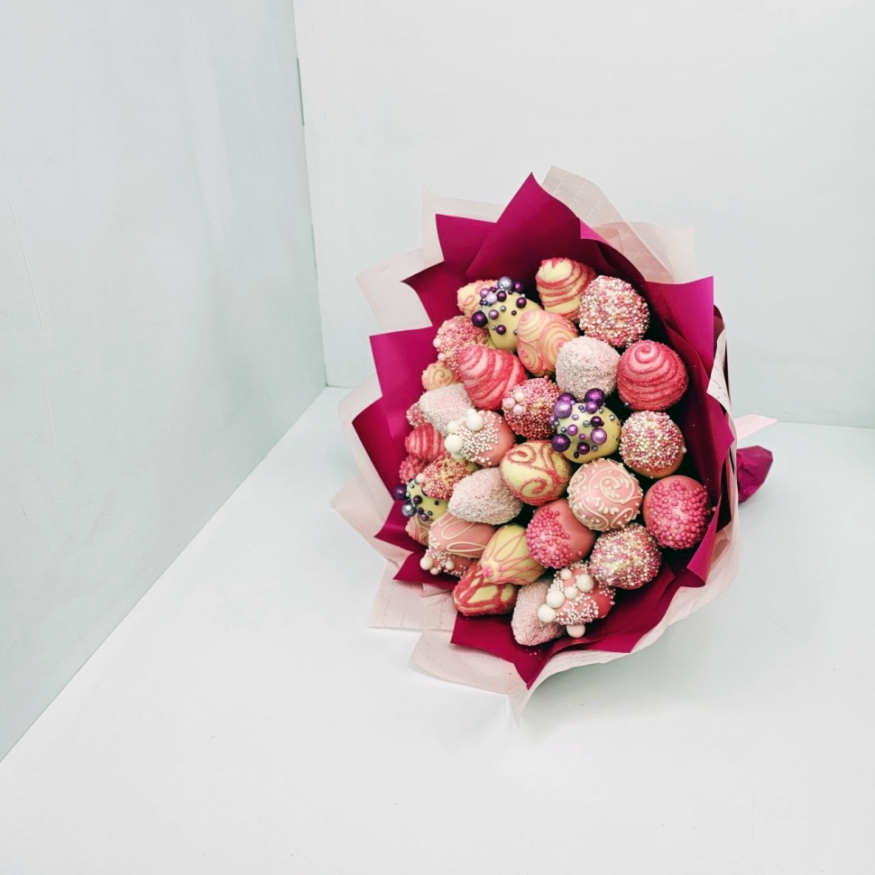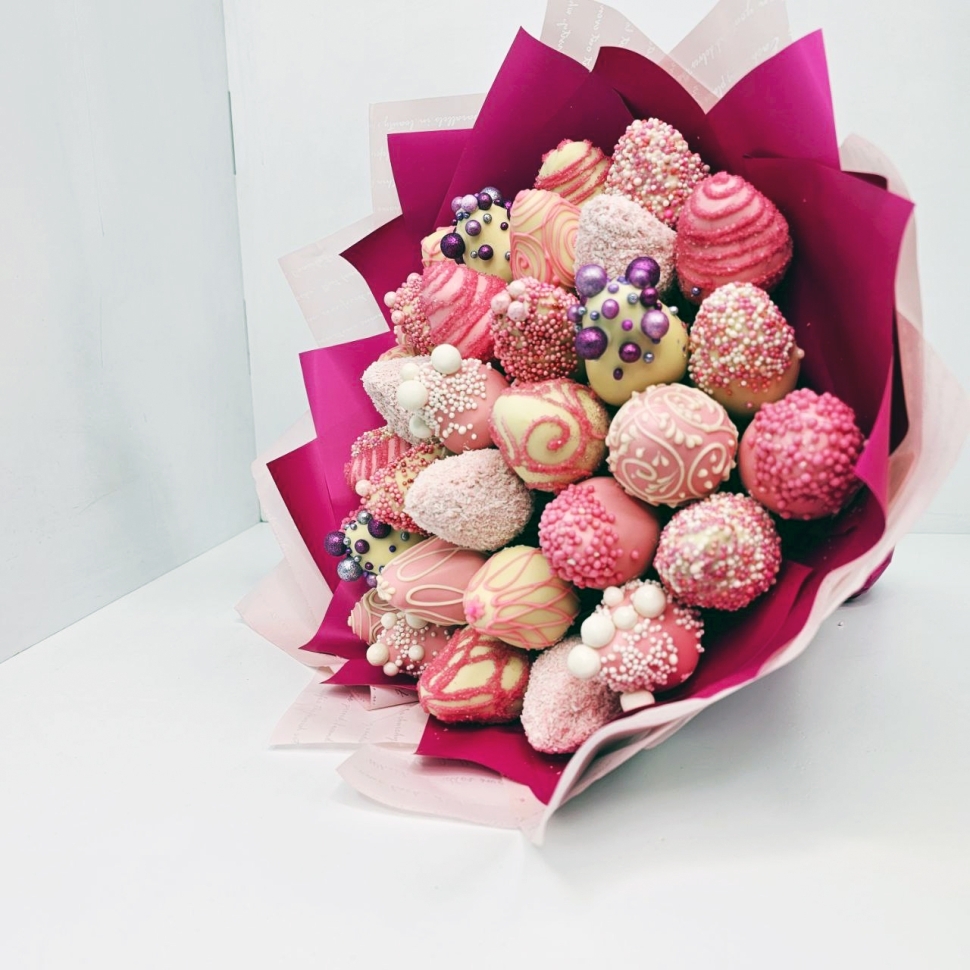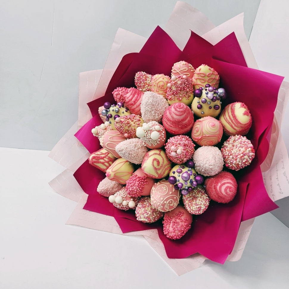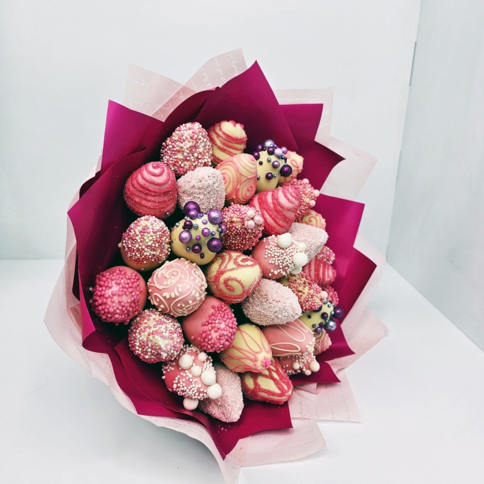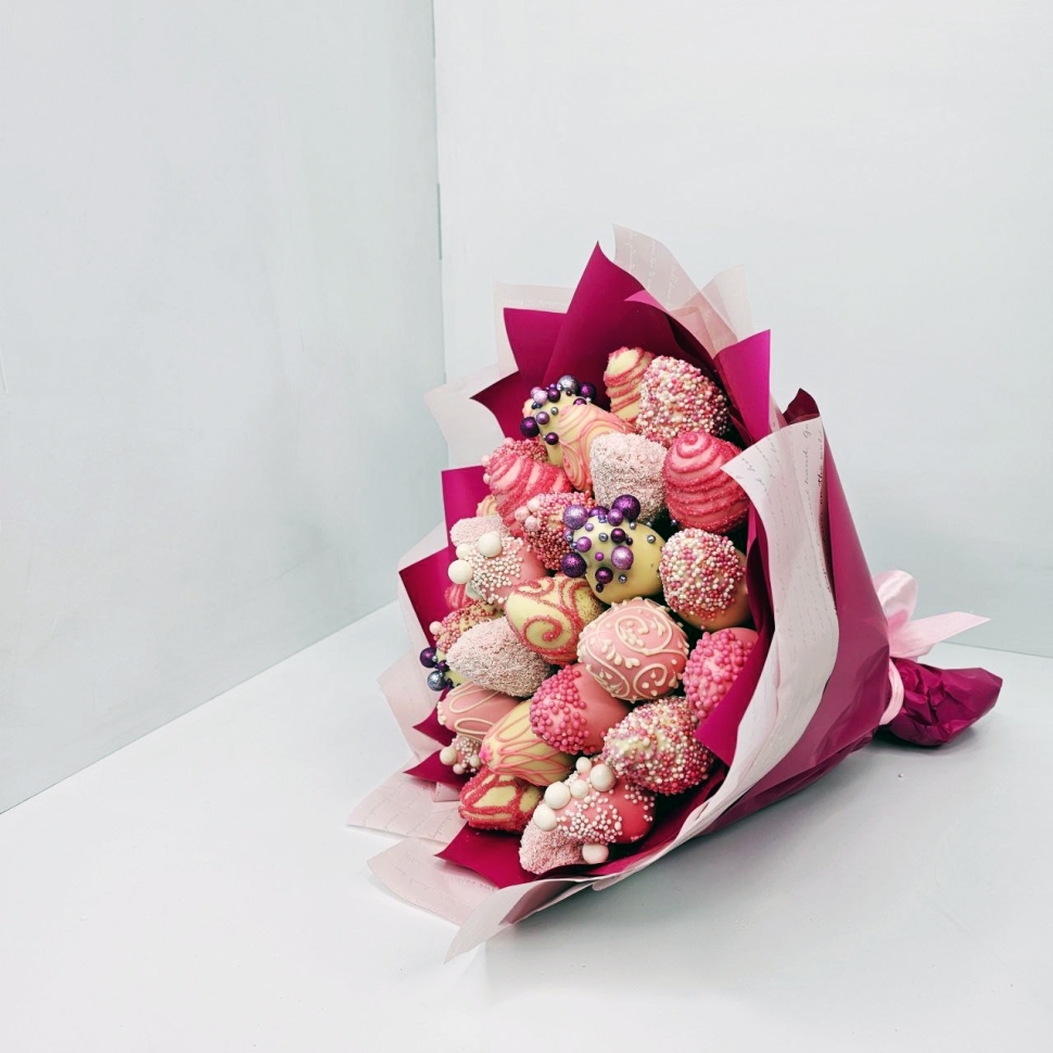 Для кого подойдет букетБукет из клубники в шоколаде - это универсальный подарок, который подойдет как ребенку, так и взрослому. Он будет радовать жену или любимую, маму или бабушку, учителя или коллегу, друга или подругу. Букет можно подарить на свадьбу, ухаживания, юбилей, годовщину, День Святого Валентина или просто без повода, чтобы порадовать близкого человека.