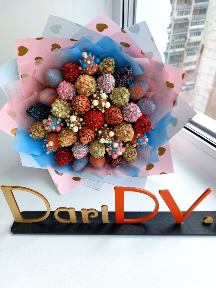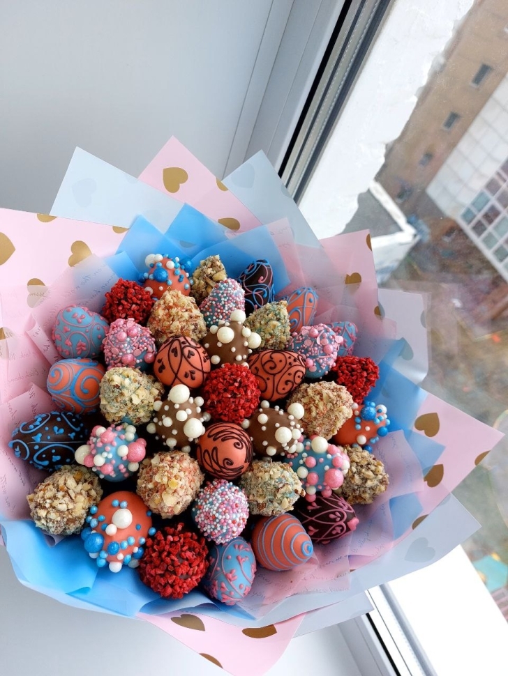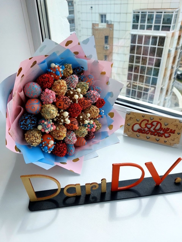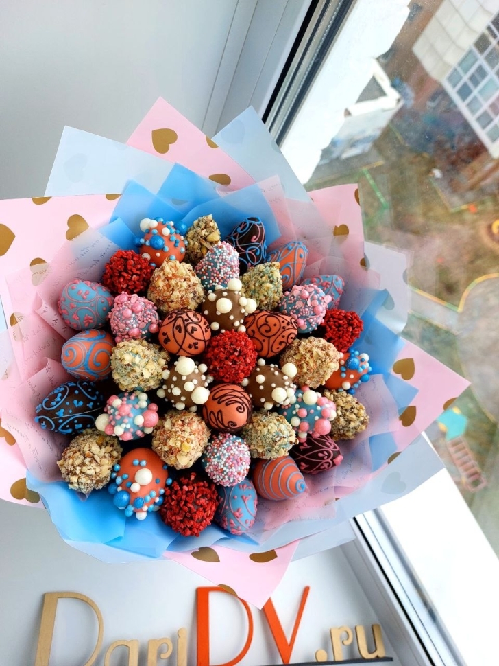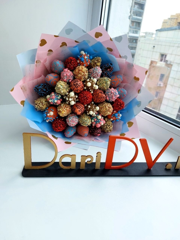 Для кого подойдет такой подарок?Букет из клубник в шоколаде подойдет в качестве подарка как женщинам, так и мужчинам. Невесте, Дочке, Тёще, Подруге, Бабушке, Любимому, Начальнику, Другу, Мужу, Ребенку, Жене, Преподавателю, Учителю, Коллеге, Девочке, Любимой, Маме, Брату, Дедушке, Мальчику, Папе, Парню, Сестре, Сыну, Тёте. Этот подарок станет замечательным знаком внимания, поздравлением, презентом, признанием в любви, а также просто способом побаловать близкого человека.