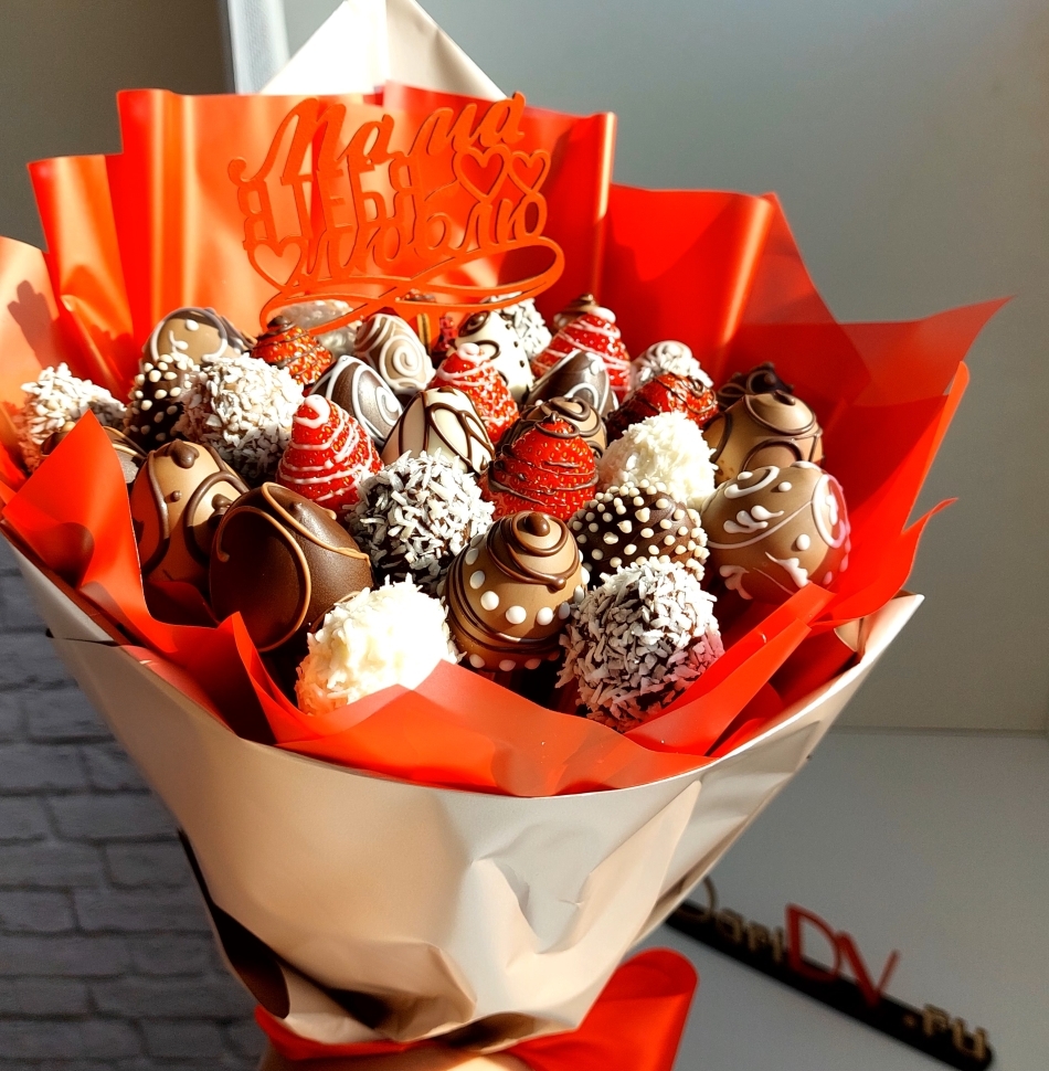 Праздник: Букет от DariDV всегда будет кстати, будь то 1 Сентября, 14 февраля, 8 Марта, 9 Мая, День Рождения, Новый Год или Свадьба. Это стильный и вкусный подарок, который точно не оставит равнодушным.
