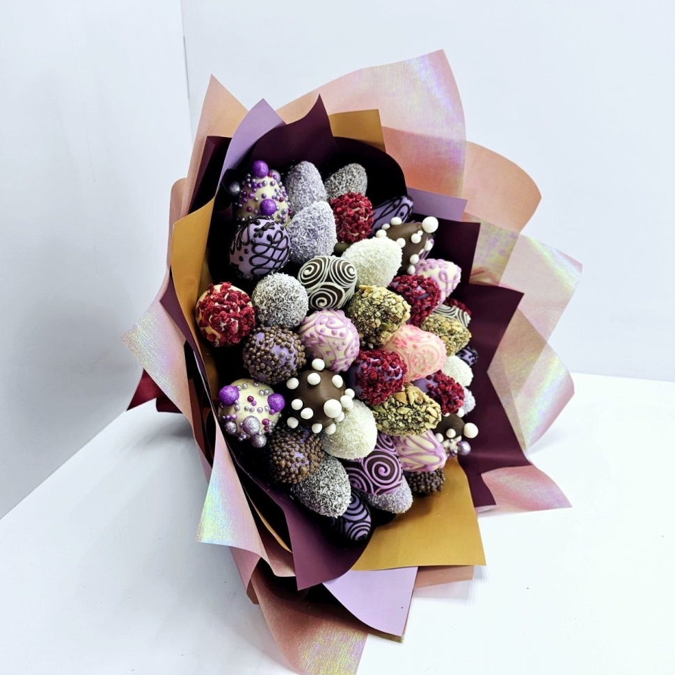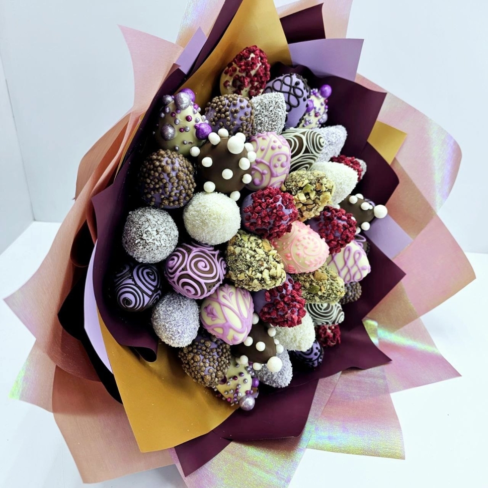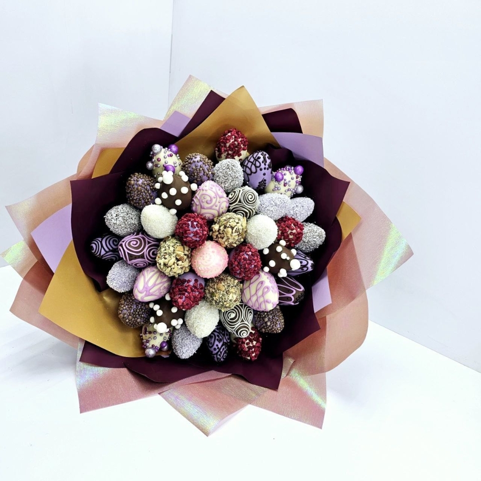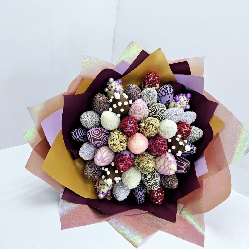 Настоящий гастрономический шедевр и воплощение элегантности - букет из 41 клубники, облаченной в бельгийский шоколад от бренда DariDV. Этот подарок оценят как любители сладостей, так и ценители оригинальных и стильных сюрпризов.