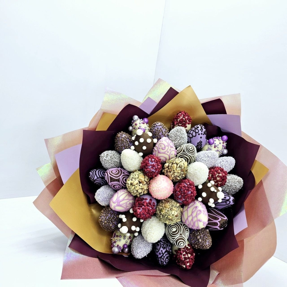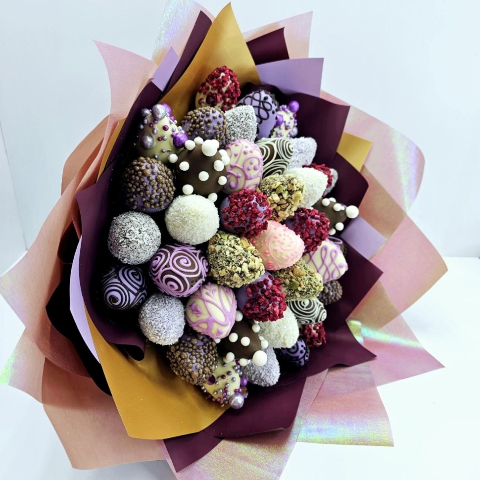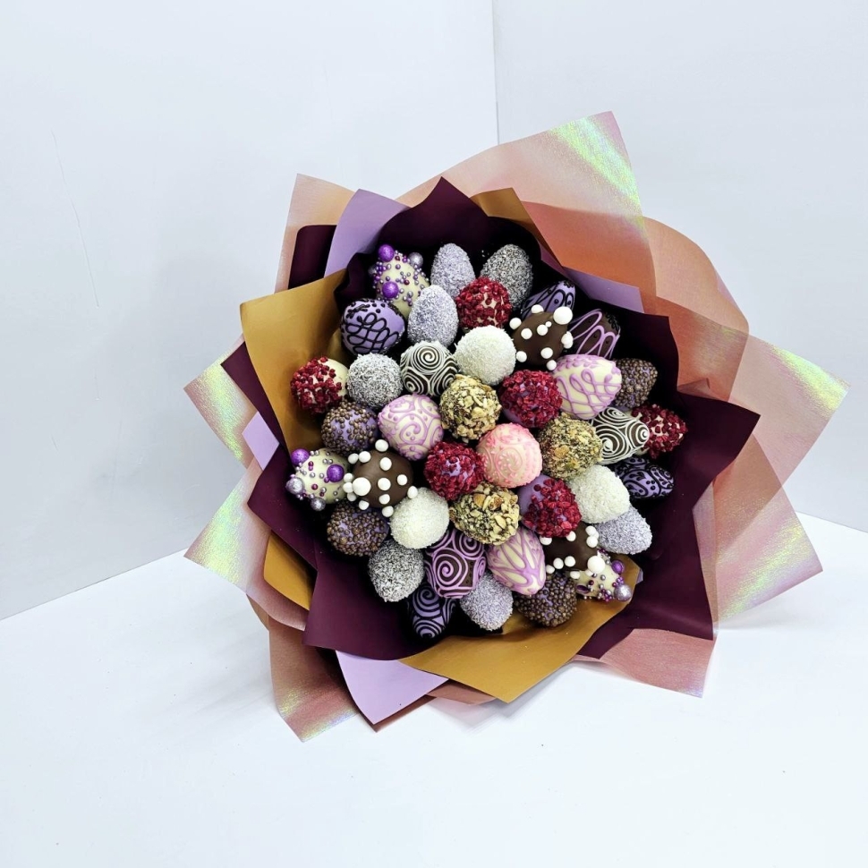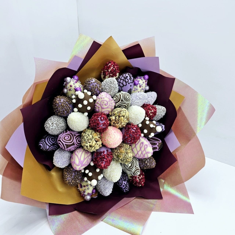 Настоящий гастрономический шедевр и воплощение элегантности - букет из 41 клубники, облаченной в бельгийский шоколад от бренда DariDV. Этот подарок оценят как любители сладостей, так и ценители оригинальных и стильных сюрпризов.