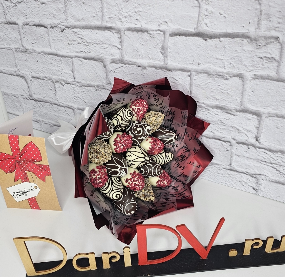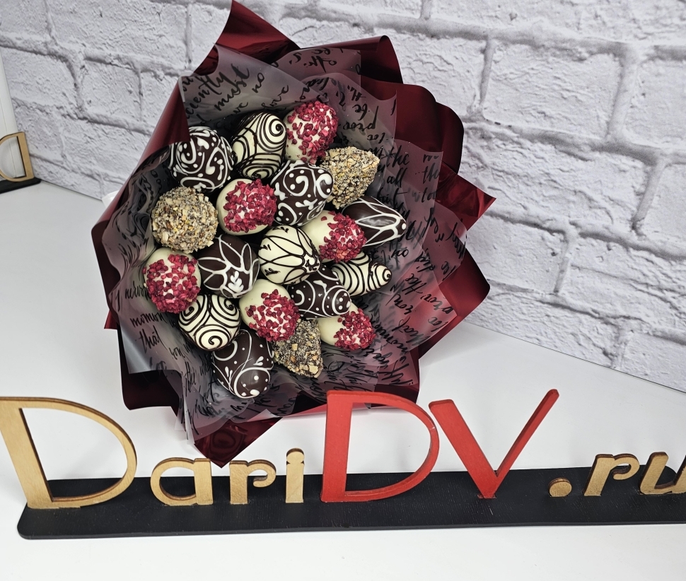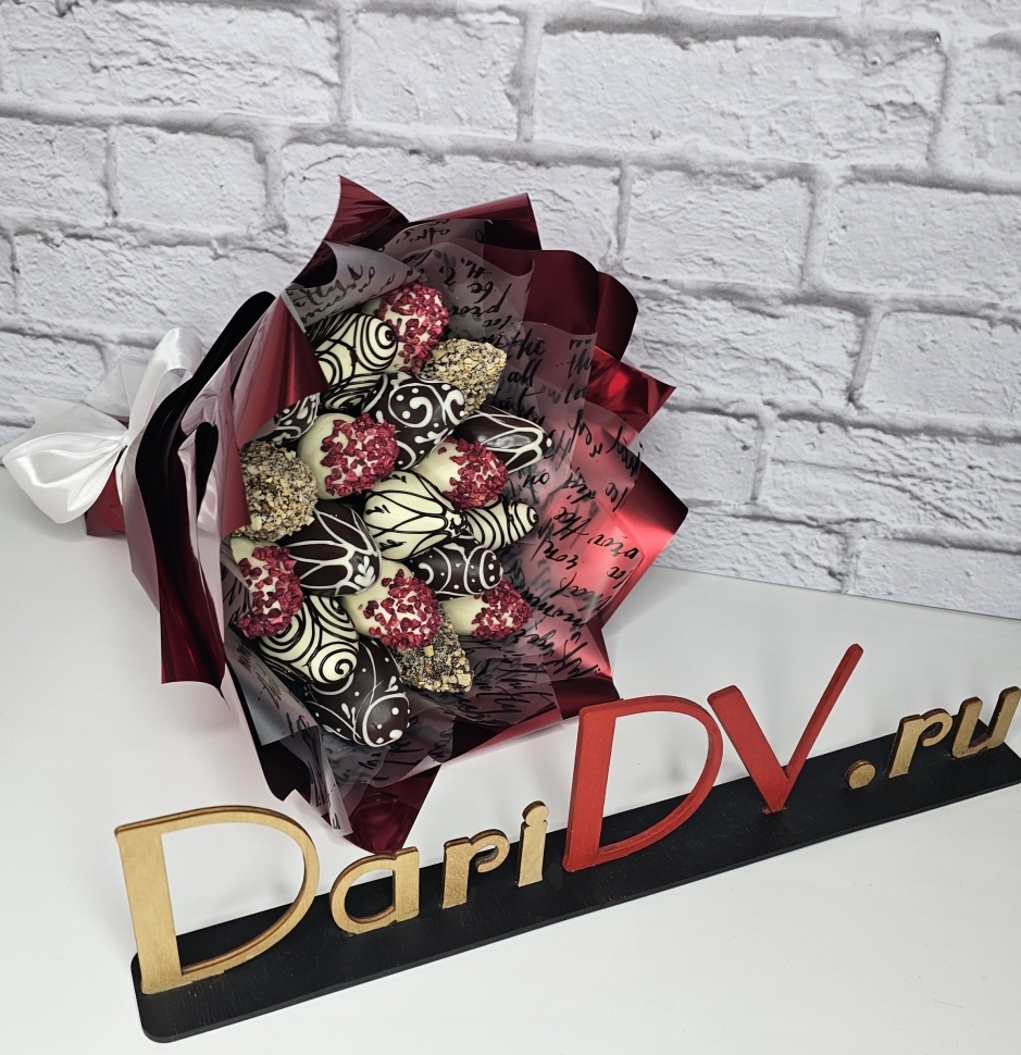 Представляем вашему вниманию уникальный подарок - букет клубники, укутанный в сладкий облачко бельгийского белого и темного шоколада. Это не просто сладость, это вкусное произведение искусства от бренда DariDV, которое затрагивает все ощущения. Ведь его можно не только съесть, но и полюбоваться.