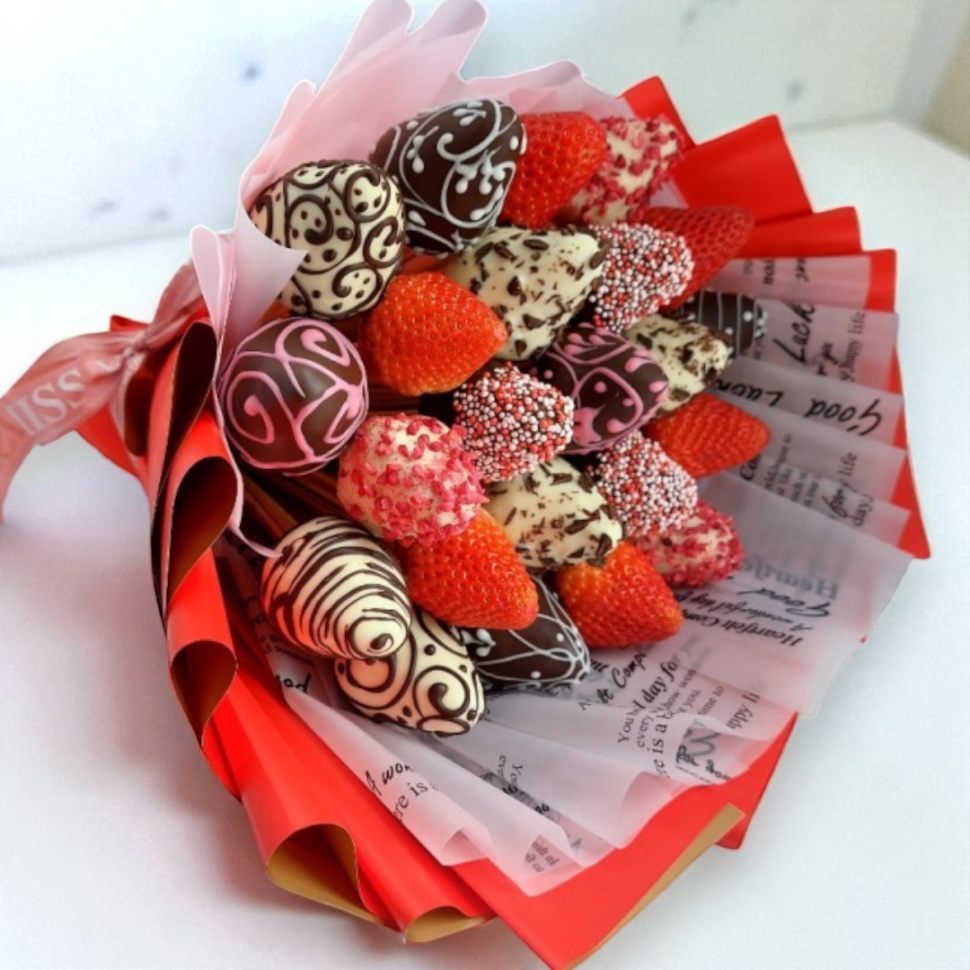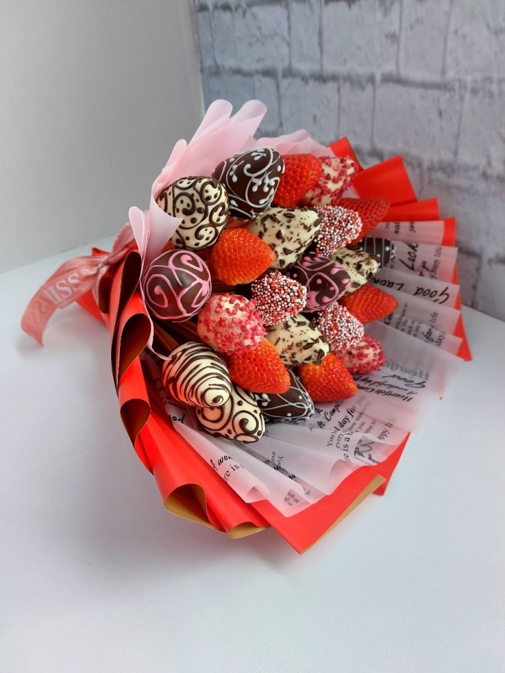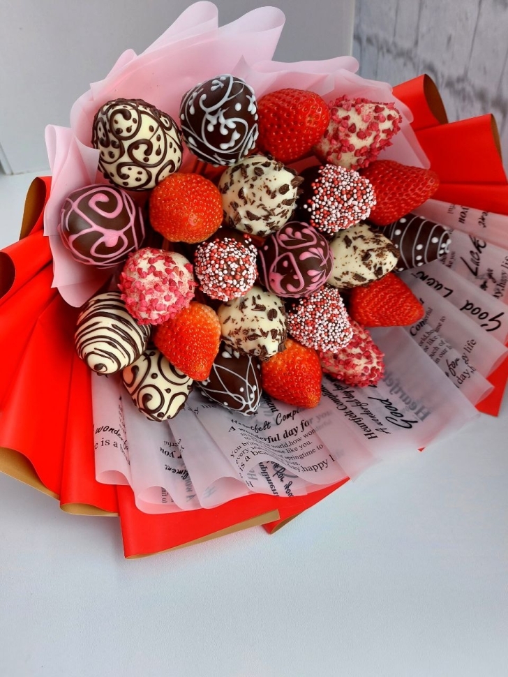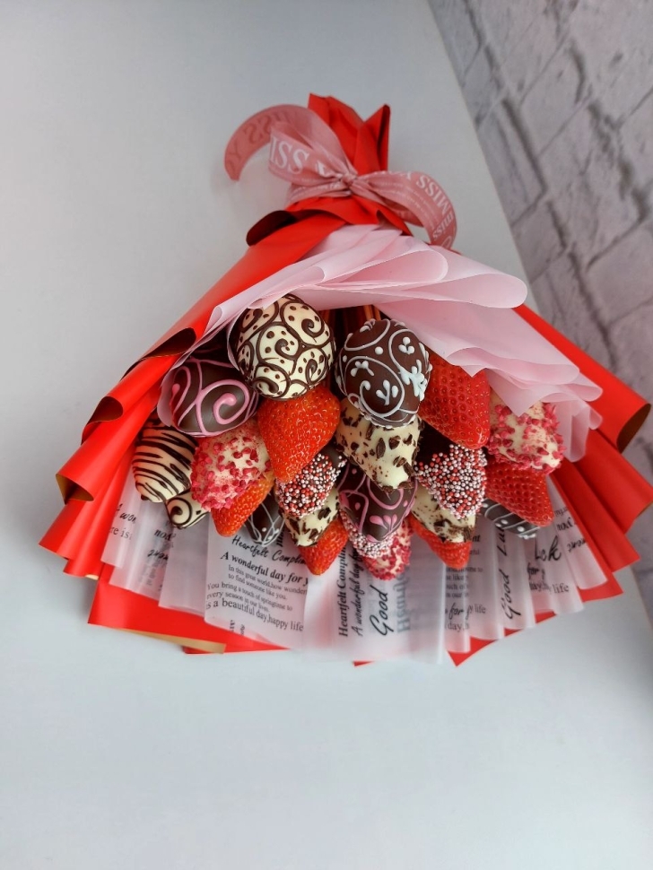 Идеальный подарок к любому праздникуБукет клубники в шоколаде будет замечательным подарком к любому празднику, будь то 1 Сентября, День Святого Валентина, 8 Марта, День Победы, День Рождения или Новый Год. Это универсальный презент, который поднимет настроение и по достоинству оценят все, кто любит сладости.