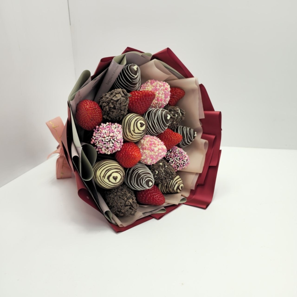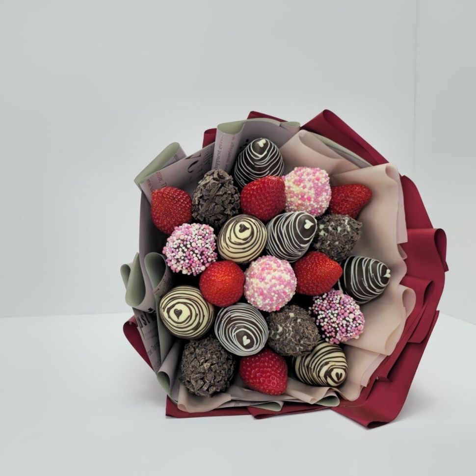 Представляем вашему вниманию уникальный подарок - Букет клубники в шоколаде со свежей клубникой от бренда DariDV. Это не просто сладость, это настоящее произведение искусства, которое украсит любой праздничный стол и подарит незабываемые вкусовые впечатления.