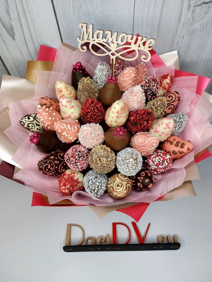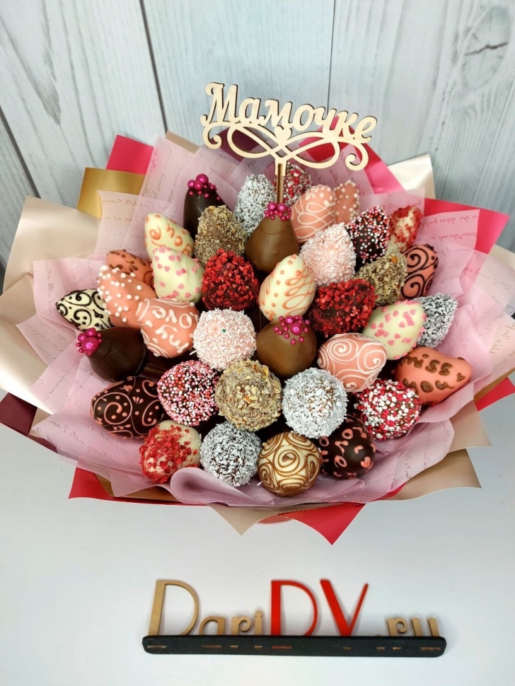 А вы знали, что можно подарить букет не только из цветов? Представляем вашему вниманию наш новый товар - букет клубники в темном, белом, молочном шоколаде. Это не просто вкусное лакомство, это настоящее произведение искусства от бренда DariDV!