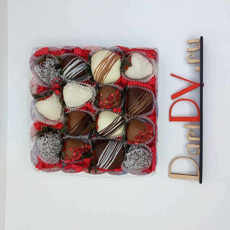 Порадуйте своих близких уникальным подарком - набором из 15 клубник, покрытых бельгийским шоколадом от бренда DariDV. Этот изысканный набор станет отличным знаком внимания и подарком на любой праздник: будь то День матери, День влюбленных или День Рождения.