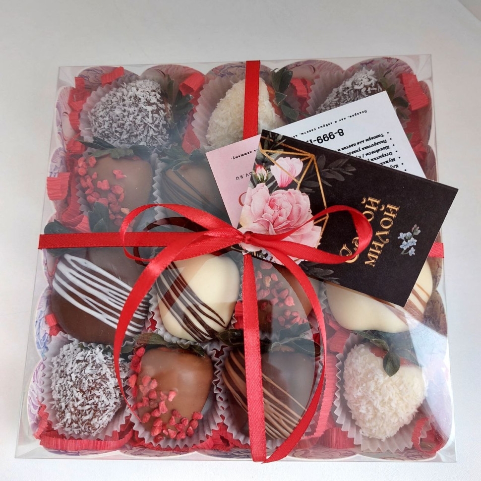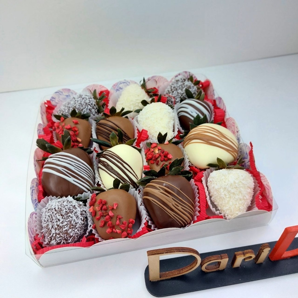 Подарок на любой праздникНабор клубники в шоколаде DariDV - это универсальный подарок, подходящий для любого праздника. День матери, День отца, День учителя, Новый Год, 8 Марта, День Рождения, День влюбленных, День Святого Валентина, Хэллоуин, 9 Мая, День победы, 1 Сентября, Юбилей, Свадьба, Выпускной - в этот список можно включить практически любую дату в году!