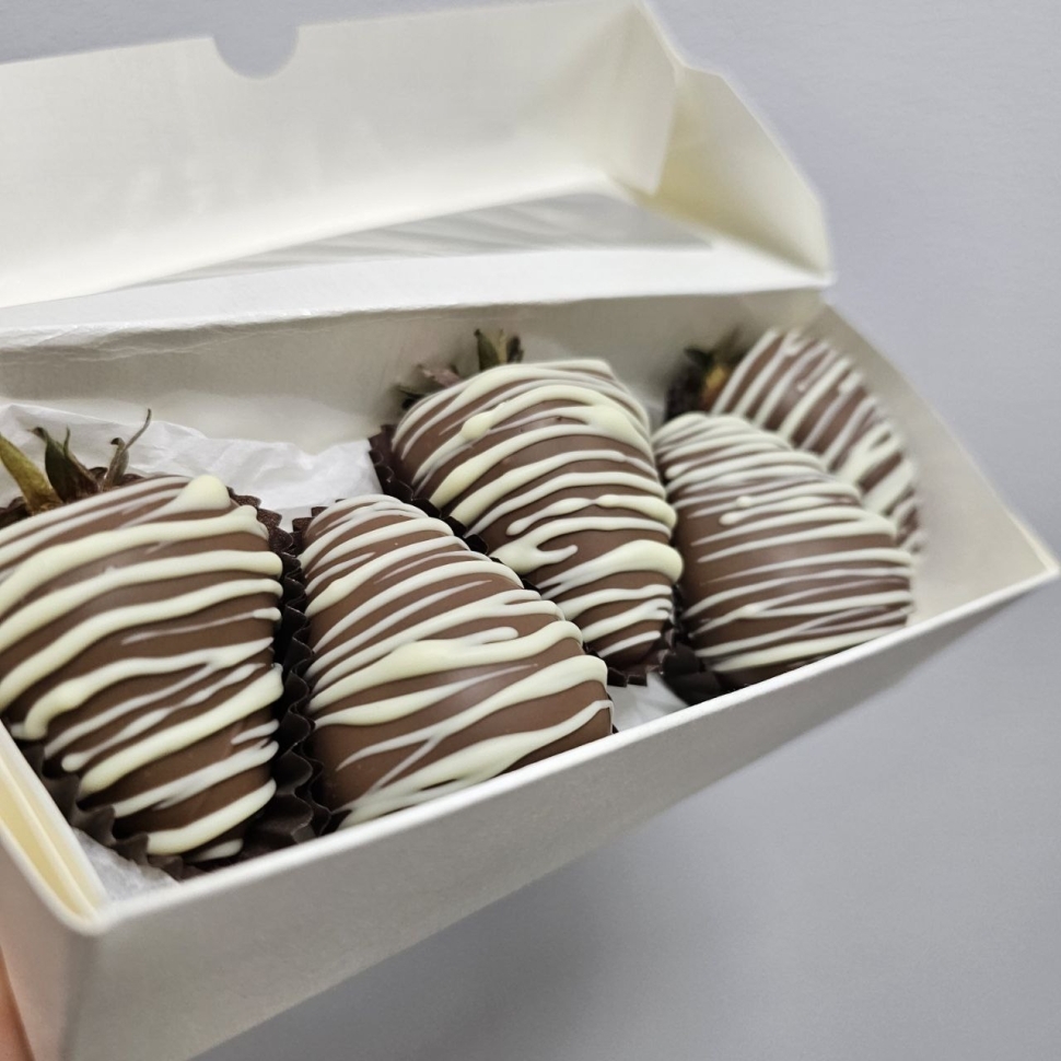 Если вы стремитесь сделать подарок, который одновременно будет и красивым, и вкусным, набор 5 клубник в молочном шоколаде - это идеальный выбор. Роскошно упакованный в белый бокс и украшенный атласной лентой, этот набор является воплощением элегантности и изысканности.