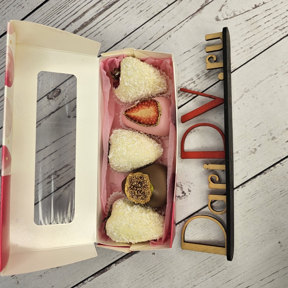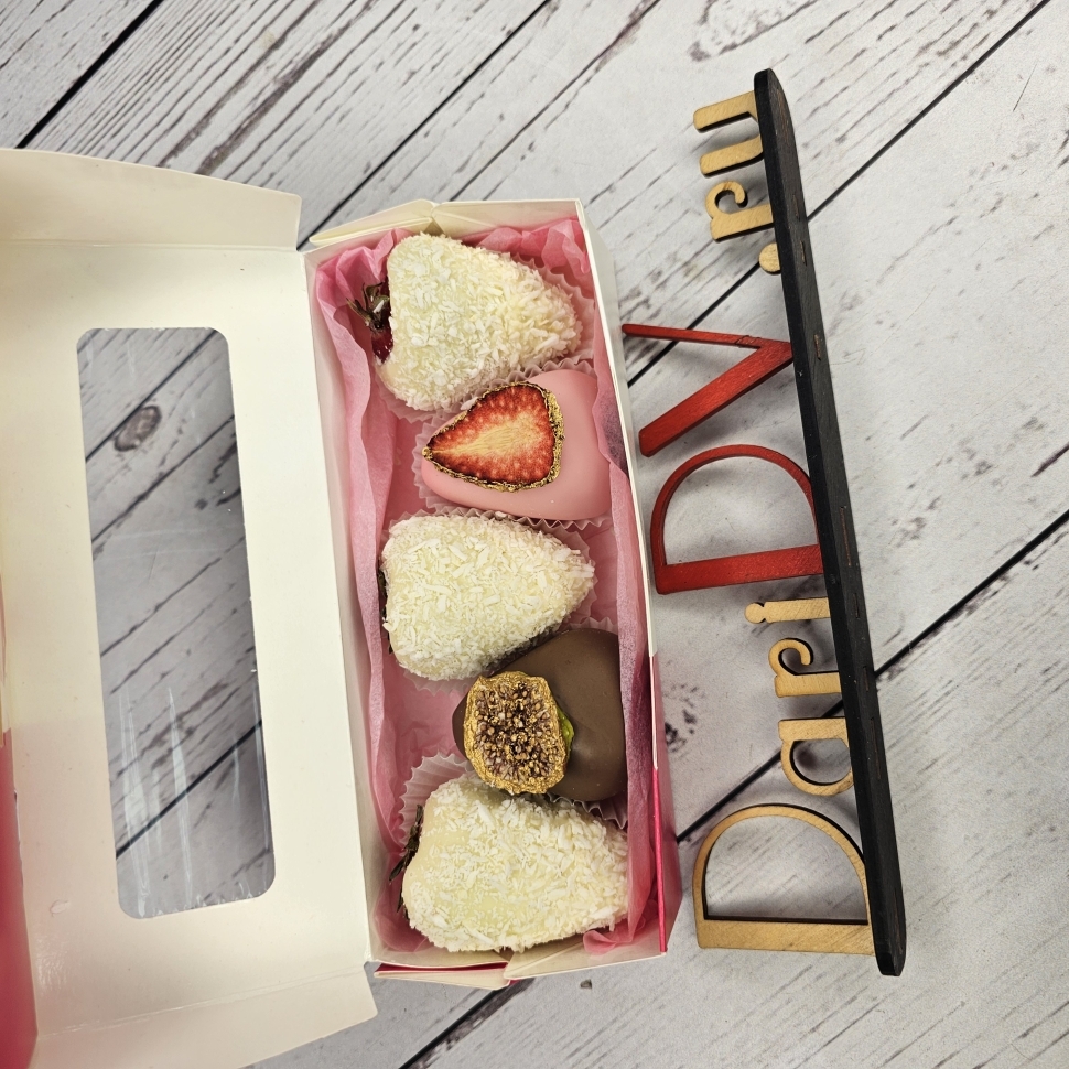 Предлагаем Вашему вниманию эксклюзивный продукт от бренда DariDV - набор "5 клубник в шоколаде". Каждая ягода внимательно отобрана, окунута в бельгийский шоколад и аккуратно упакована в элегантный бокс. Это идеальный подарок для любого случая, будь то День Рождения, Юбилей, День Святого Валентина, День матери, День учителя или просто знак внимания.